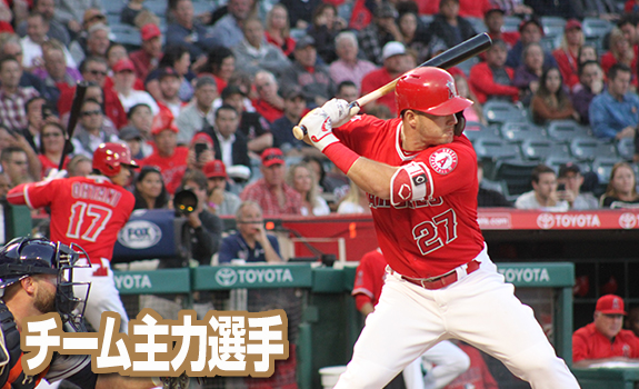 | 右翼手 左投左打 メジャー通算6年の中堅選手。2017年は主に5番を打ち、チーム3位となる71打点を記録しました。守備面では強肩に定評があり、2015年にはゴールデングラブ賞を獲得したこともあります 守備での貢献度も高い選手です。ロサンゼルスエンゼルスの中心選手。 また、メジャーリーグで最も注目度の高い選手と言っても過言ではないでしょう。 走・攻・守全てにおいてメジャー最高レベルの選手です。 メジャー通算は7年ながら、MVPを2回、シルバースラッガーを5回受賞し、オールスターゲームには6度も出場しています。 |